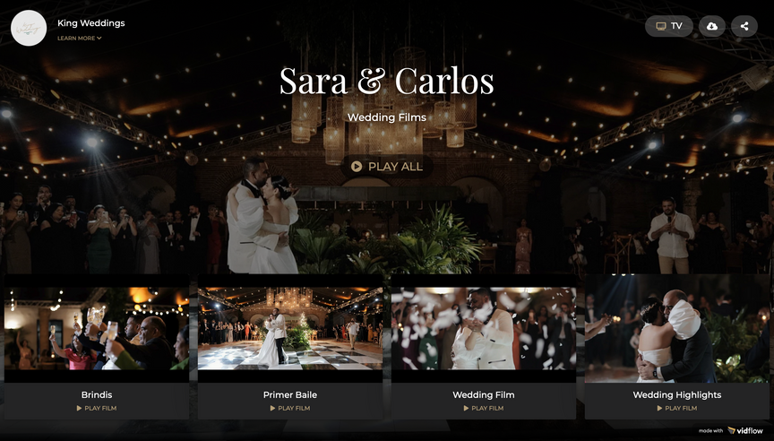 Para entregar nuestros trabajos creamos una pagina web personalizada donde puedes ver tus videos en el momento que quieras y en cualquier equipo digital que tengas, smart TV, computadoras, tabletas, teléfonos y tambien puedes descargarlos con un solo click.